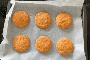 4. Maak met je handen 6-8 burgers en leg ze op de bakplaat. Gebruik een kwastje om ze in te vetten met een beetje olie.