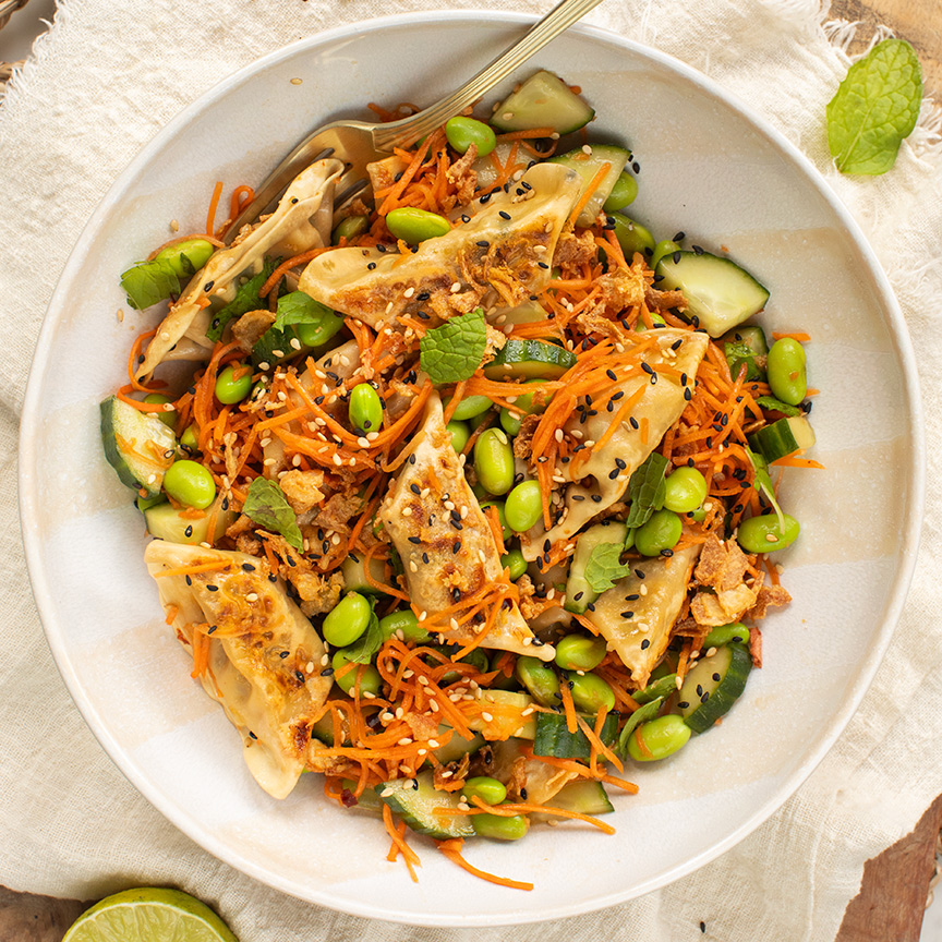 7. Serveer de gyoza salade lauwwarm of koud.