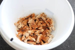 1. Verwarm de oven op 200 graden. Kook de krieltjes (afhankelijk van de dikte) ca. 8 minuten voor tot ze beetgaar zijn. Doe het vlees in een kom en voeg de gyroskruiden en een eetlepel olie toe, meng goed door elkaar. Bak het vlees gaar in een koekenpan, als je vega stukjes gebruikt is dit niet nodig omdat dit al vaak gaar is.