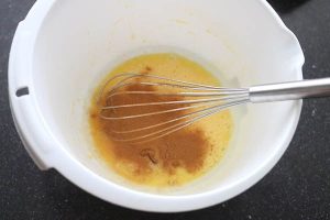 3. Klop de eieren los in een kom met een snuf kaneel, honing en zout. Roer de havermout erdoor.