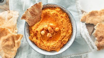 4. Ondertussen snijd je de pita’s in driehoekjes en doe je ze voor 5 minuten in de oven op 175 graden in de oven of bak ze even in de pan met wat olijfolie.