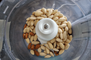 2. Maal beide amandelsoorten fijn in een keukenmachine.