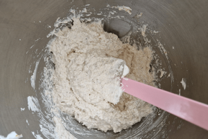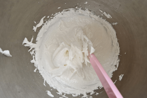 4. Mix totdat de suiker is opgenomen en er een stevige witte massa is ontstaan.