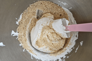 5. Roer de gemalen amandelen er doorheen samen met een snufje zout. Optioneel kun je hier ook wat citroenrasp toevoegen.