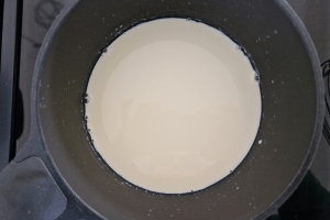 1. Giet de melk en de slagroom in een steelpannetje met dikke bodem en breng het net niet aan de kook.