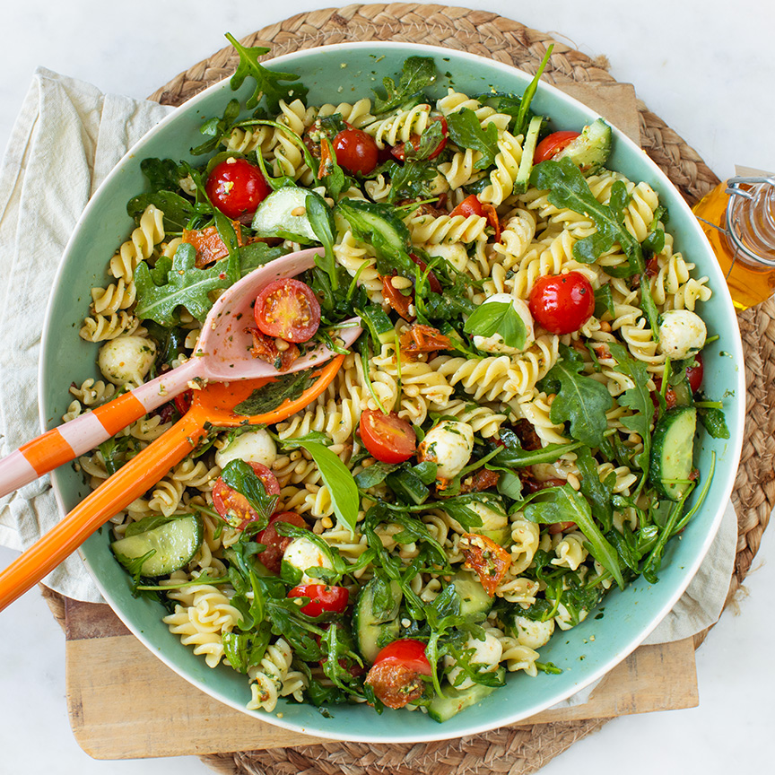 Italiaanse pastasalade met pesto