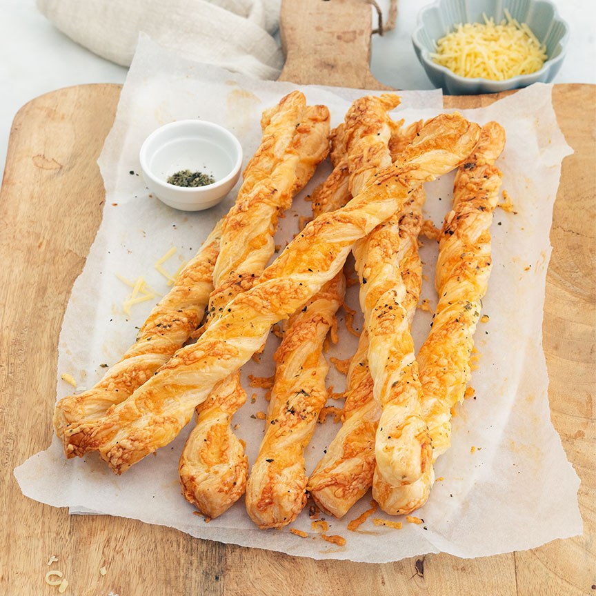 6. Bak de kaasstengels ca. 15 minuten in de oven tot ze krokant zijn en goudbruin.