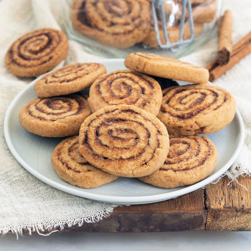 11. Schuif de bakplaat met de kaneelkoekjes de oven in en bak de koekjes in 20 minuten goudbruin. Haal de bakplaat uit de oven en laat de koekjes erop afkoelen.