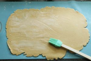 8. Dip een kwastje in de melk en bestrijk het deegoppervlak hiermee.