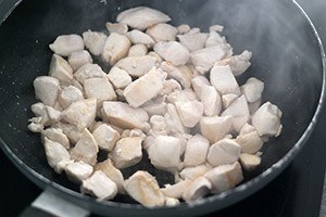 ‘Voeg de kip toe en bak rondom goudbruin.’