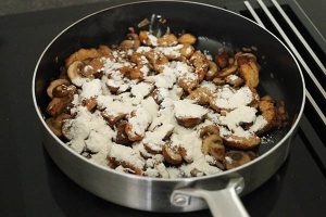 3. Voeg de champignons toe en bak deze een paar minuten in de pan.