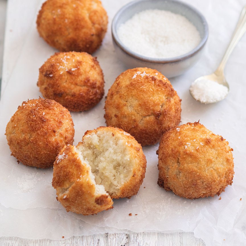 8. Bak de kokosmakronen in het midden van de oven in ca. 20 min. goudbruin en gaar.