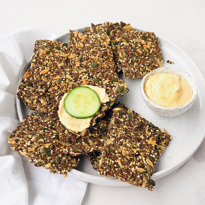 5. Tip: Verdeel het mengsel optioneel in twee of drie porties en meng door alle drie andere kruiden, zodat je crackers met verschillende smaken heb.