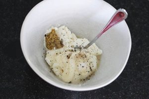 1. Meng de ingrediënten voor de dressing door elkaar. Roer tot alles goed is opgenomen en er een gladde saus ontstaat.