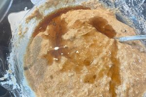 3. Voeg de vanille aroma en maple syrup toe en roer door elkaar.