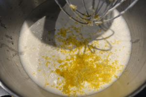 3. Voeg de suiker, de citroensap en de rasp toe en meng goed door elkaar.
