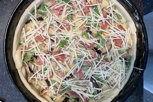 6. Laat de quiche een paar minuten afkoelen voordat je hem aansnijdt.
