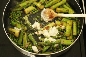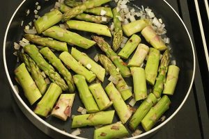 4. Voeg de stukken asperges toe en bak een minuut of 5.