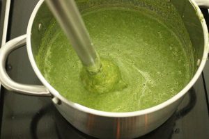 4. Giet de bouillon erbij en breng zachtjes aan de kook. Laat de soep ca. 10 minuten koken en pureer dan fijn met een staafmixer (of blender). Giet de room erbij en roer erdoor. Proef of de soep goed op smaak is en breng eventueel wat extra op smaak met bijvoorbeeld een snufje chili.