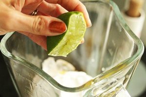 2. Voeg het limoensap toe en eventueel nog een beetje honing of agavesiroop om het iets zoeter te maken. Mix tot een glad en dik sapje.