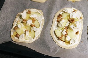 Mini flammkuchen met appel en geitenkaas