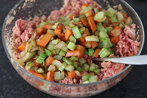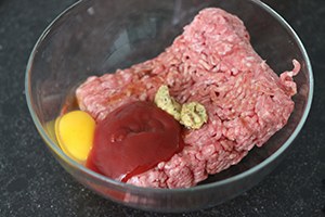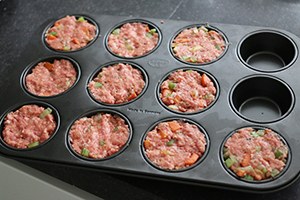 1. Verwarm de oven op 200 graden. Hak de ui, bleekselderij en wortel in kleine stukjes. Fruit deze aan in een pan met een klein beetje olie. Meng het gehakt met het ei, paneermeel, mosterd, ketchup, worcestersaus en een snufje peper en zout. Kneed de gebakken groenten door het gehaktmengsel. Vet de muffinvorm in met wat boter of olie. Vul ze met het gehaktmengsel en druk goed aan. Zet ze ca. 25 minuten in de oven. Meng ondertussen de BBQ saus en de ketchup in een kommetje.