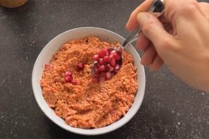 4. Tips: bewaar de muhammara afgedekt in de koelkast, maximaal 5 tot 7 dagen.
