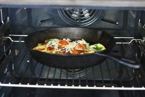 3. Tip: heb je geen ovenvaste koekenpan? Doe dan de deksel op de pan na het toevoegen van de kaas en laat een paar minuten op laag vuur smelten.