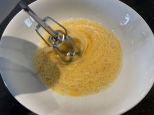 1. Klop de eieren luchtig met de melk en een snufje zout en peper Verhit een koekenpan met olie en bak 2 dunne omeletten van het eimengsel. Laat de omelet afkoelen op een bord.