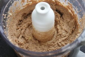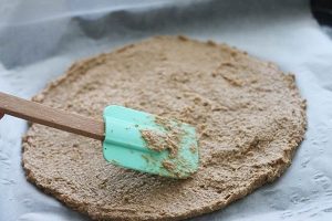 1. Verwarm de oven op 175 graden. Voeg de havermout, kaneel, eieren en 250 gram banaan toe in de keukenmachine en meng tot een gladde massa. De massa zal er als een deeg uitzien, maar is niet té stevig. Verdeel het deeg voor de bodem over een vel bakpapier en maak een ronde pizza vorm.
