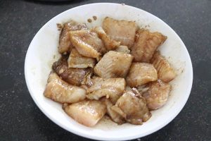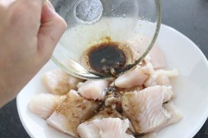 1. Meng de ingrediënten voor de marinade door elkaar. Snijd een pangafilet in hapklare stukken en marineer dit op een bord in de marinade. Zet dit even apart in de koelkast. Kook de rijst gaar.