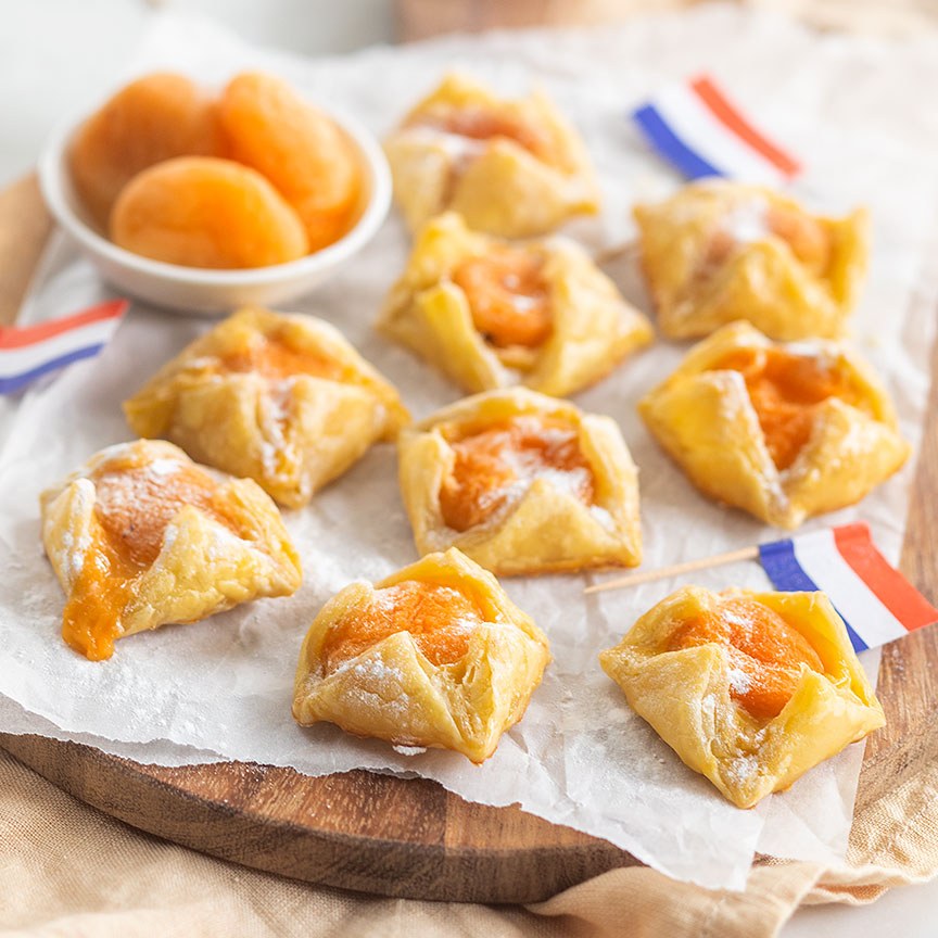 Oranje bladerdeeg kroontjes met abrikoosjes