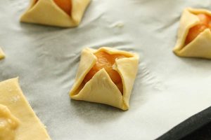 6. Vouw de hoekjes naar boven en vouw ze een beetje over de abrikoos.