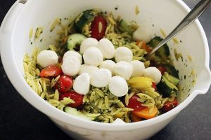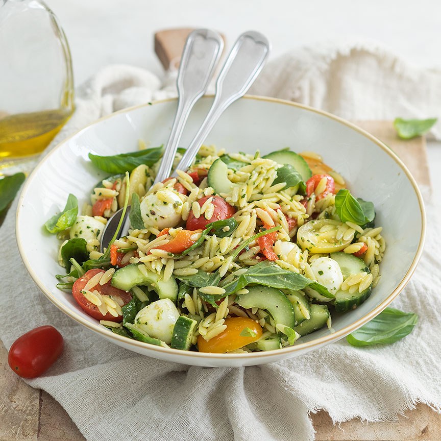 Orzo salade met pesto