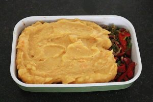 Ovenschotel met gehakt en zoete aardappelpuree