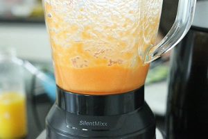 1. Rasp de wortel of gebruik wortel julienne. Meng dit met het sinaasappelsap en blend dit in een blender al tot een glad geheel. Door deze stap zal de wortel glad mogelijk worden. Voeg vervolgens ook de banaan en yoghurt erbij.