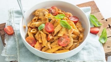 1. Kook de pasta volgens de aanwijzingen op de verpakking in gezouten water tot deze al dente is. Giet daarna af en bewaar een klein kopje van het kookvocht, dit kan straks handig zijn om de saus wat smeuïger te maken.
