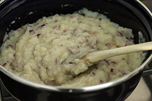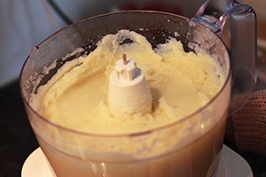 2. Snijd de bloemkool in roosjes. Breng een pan met water aan de kook en kook de bloemkoolroosjes in 10  a 15 minuten beetgaar. Pureer ze dan samen met een scheutje water met een staafmixer of keukenmachine tot een gladde saus.