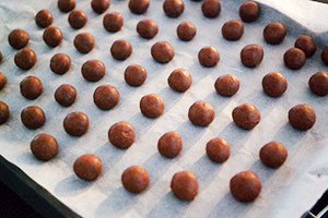 6. Maak de balletjes niet te groot want ze rijzen nog in de oven. Tip: leg de balletjes in schuine rijen op de bakplaat zodat de warmte van oven overal goed bij kan.