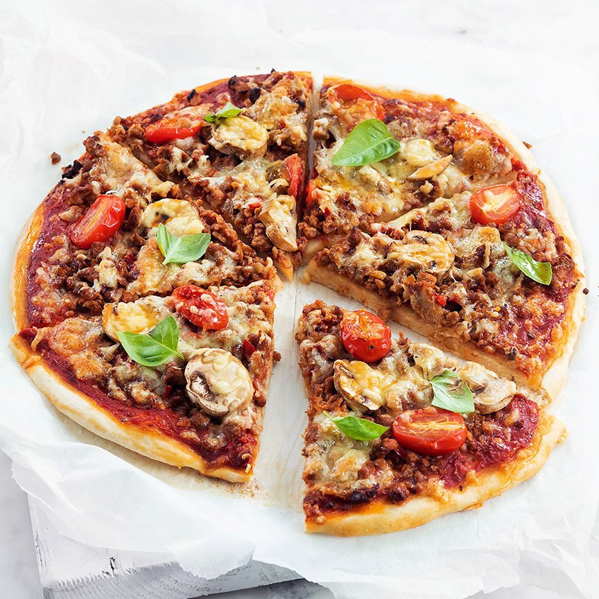 Ingrediënten: Pizza met pittig gehakt