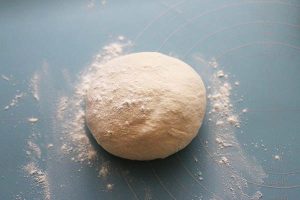 4. Verdeel het deeg in tweeën en draai er ballen van. Rol uit op een ondergrond met een beetje bloem.