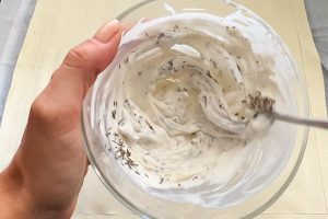 5. Prak 2/3 deel van de geitenkaas fijn en meng met de melk, honing, peper, zout en tijm.