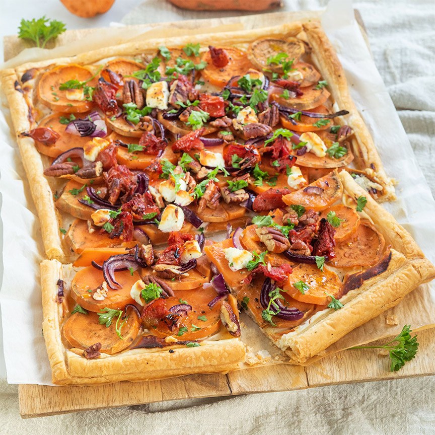 Plaattaart met zoete aardappel