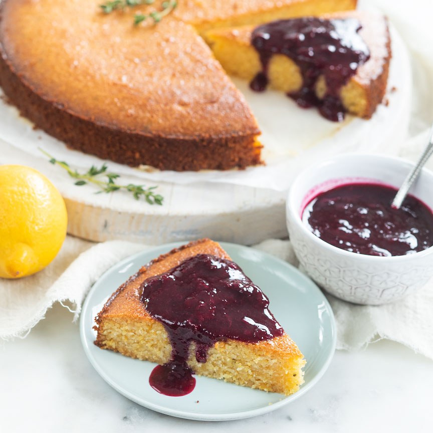 8. Vul de springvorm met het mengsel en bak voor 40 minuten op hete lucht stand totdat de polenta cake goudkleurig en gaar is.