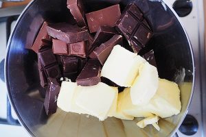 3. Smelt de boter samen met de pure- en melkchocolade au bain-marie.