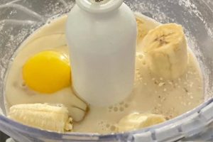 2. Voeg de banaan, eieren, kaneel, eiwitpoeder (whey Proteine) en een scheut melk toe en mix tot een beslag.