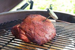 6. Doe de klep van de barbecue dicht en laat het vlees rustig garen. Check af en toe de kerntemperatuur. Zodra deze ongeveer 72 graden is wikkel je het stuk vlees in aluminiumfolie. Bij mij was dit na ca. 4 uur, maar dit is afhankelijk van de dikte van het vlees.