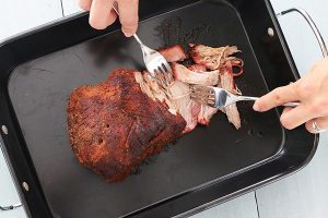 11. Leg het vlees in een schaal en trek met 2 vorken uit elkaar.