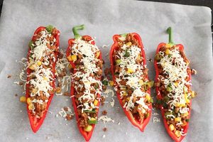 3. Tip: Deze gevulde puntpaprika’s met gehakt zijn lekker als lunch of met rijst of couscous als hoofdgerecht.