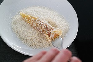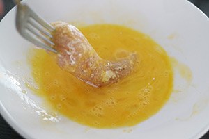 1. Verwarm de oven voor op 200 graden. Klop het ei los op een bordje. Bestrooi de kip met een snuf peper en zout. Haal ze door de bloem, vervolgens door het ei en door de panko. Leg ze op een bakplaat met bakpapier en bak ze 25 min in de oven tot ze bruin beginnen te kleuren.